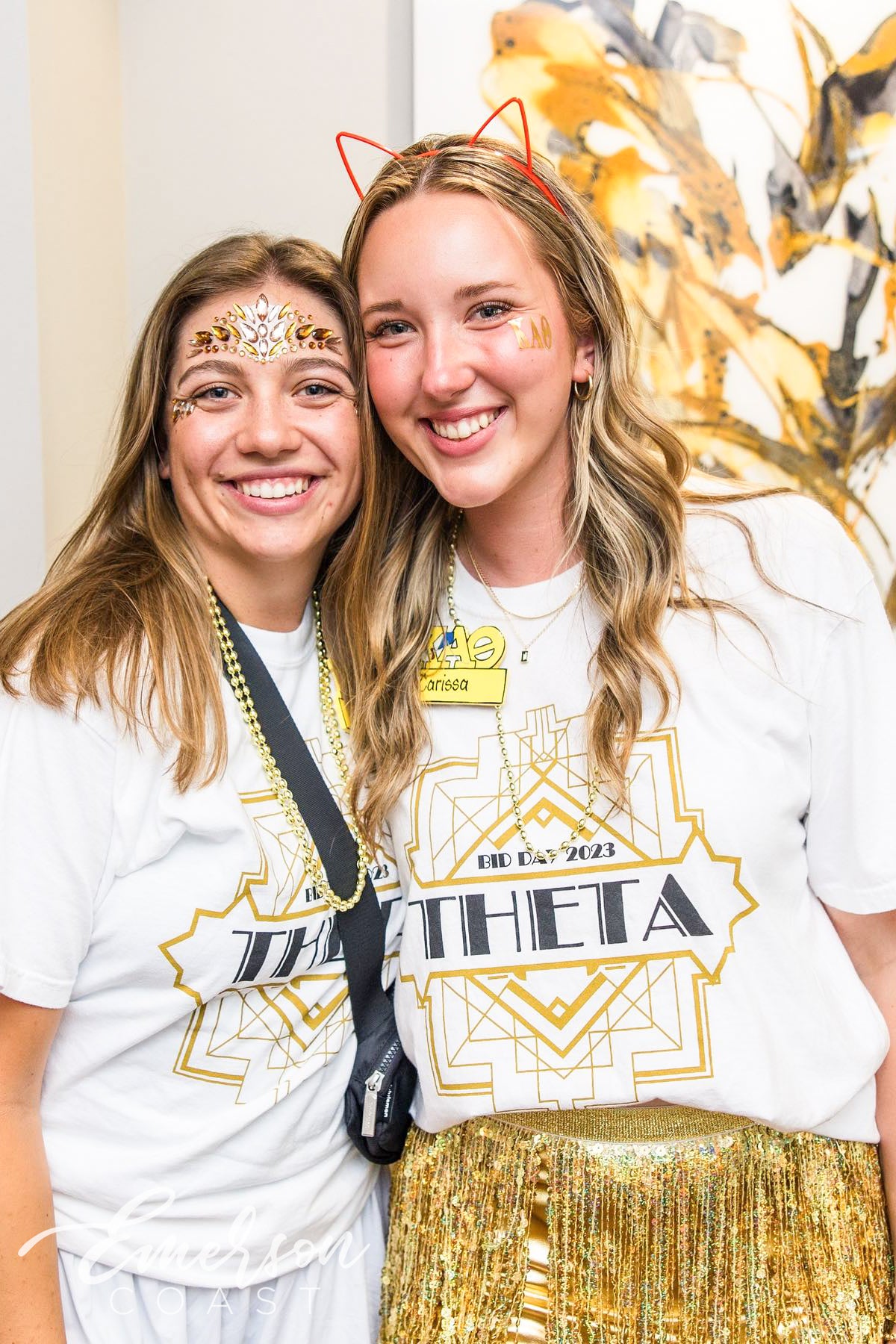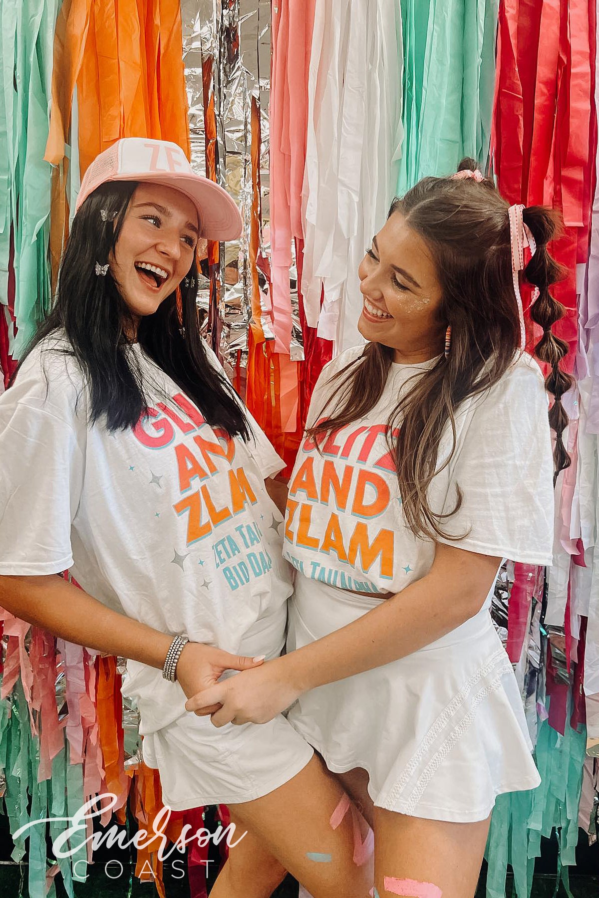 Delta Gamma at Texas A&M kept things timeless with custom white letter jerseys featuring bold Greek letters, paired with crisp white tanks for Bid Day. Clean, elevated, and full of spirit — their new members definitely felt the love in style!