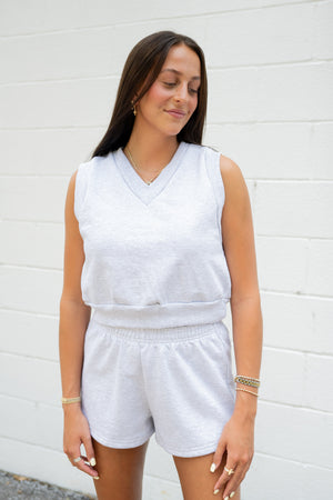 LA Apparel Cropped V-neck Vest and Shorts Set