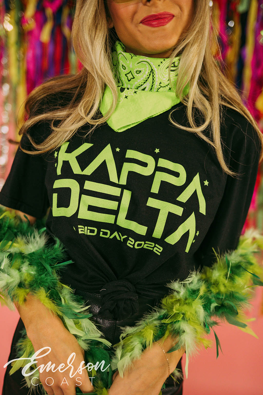 The designs you can create with this theme are ENDLESS! The Alpha Delta Pi Space Bid Day Tank is a design your chapter will obsess over. It is soft material with a distressed design that will stand out on bid day. The ZTA Nasa Bid Day T-shirt is a trendy design that is perfect for the space theme. If you are looking for a unique theme, the GPhi Out of This World tee is exactly what your new members will want. Space themed bid day designs will be memorable for every new member.