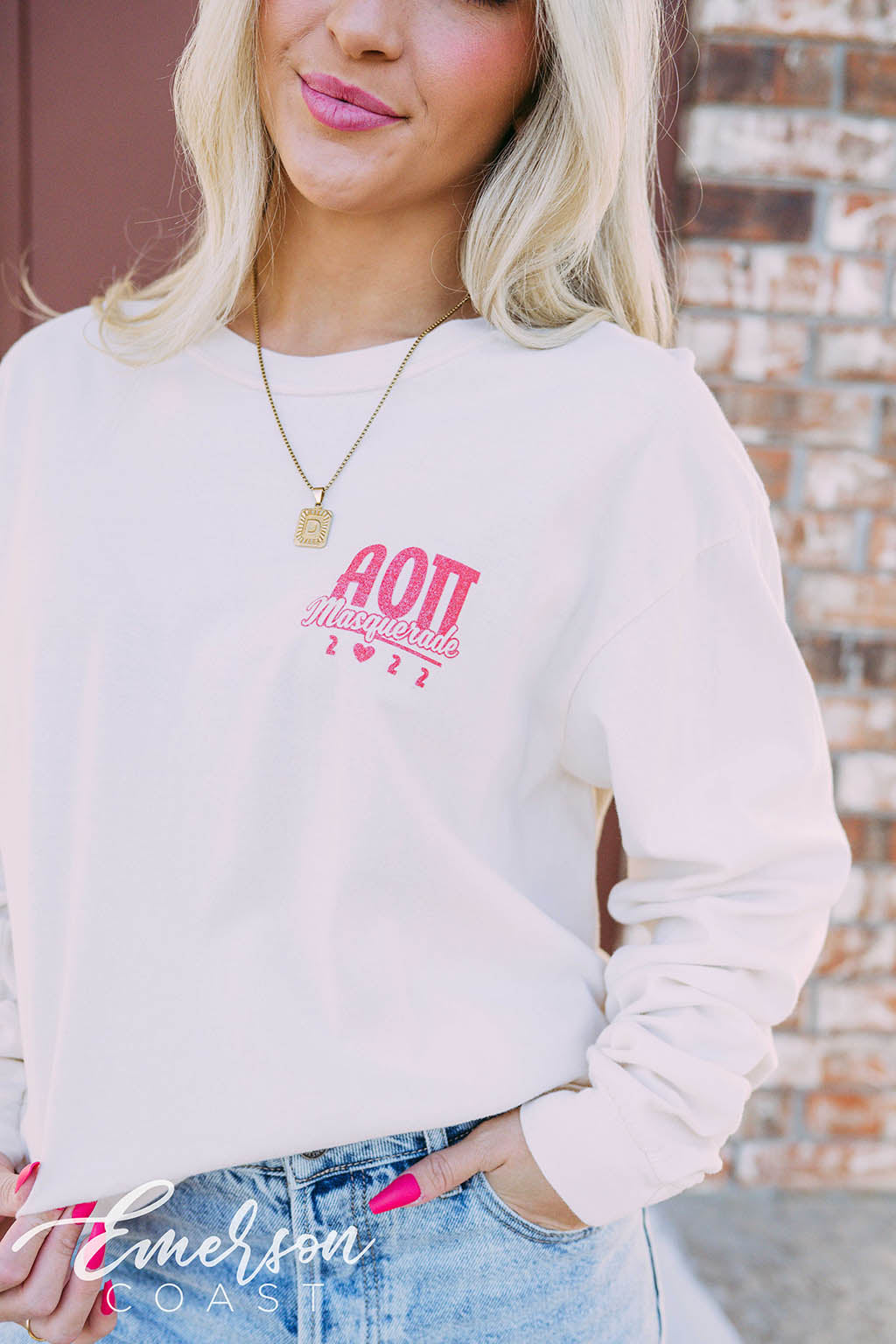 The ivory long sleeve is perfect for any design and will have the whole chapter feeling cozy.