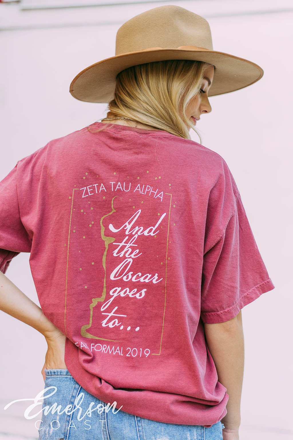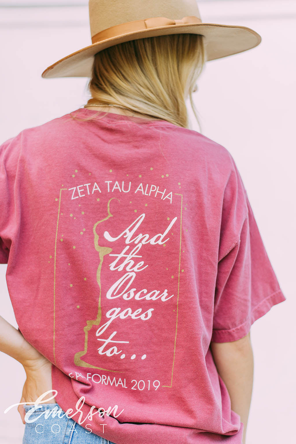 ZTA at Georgia Tech rocked custom teal slouchy tees for Recruitment, pairing them with white denim for a clean, polished look. The bold color choice made a statement while keeping things fun, fresh, and totally on brand.