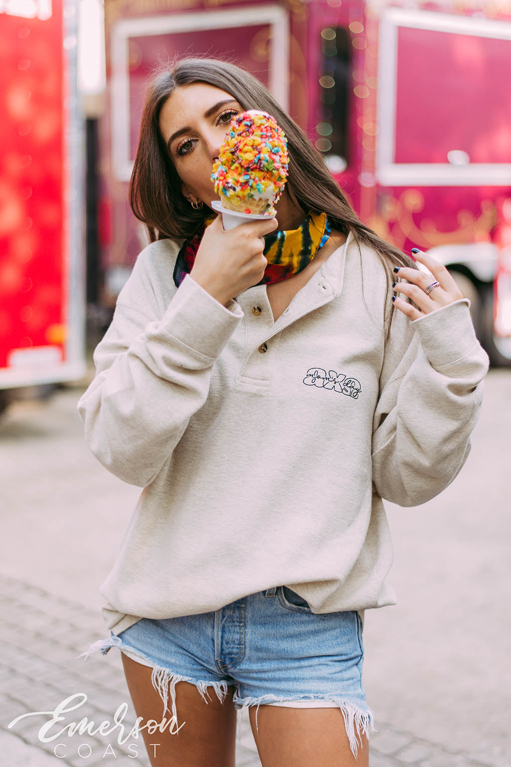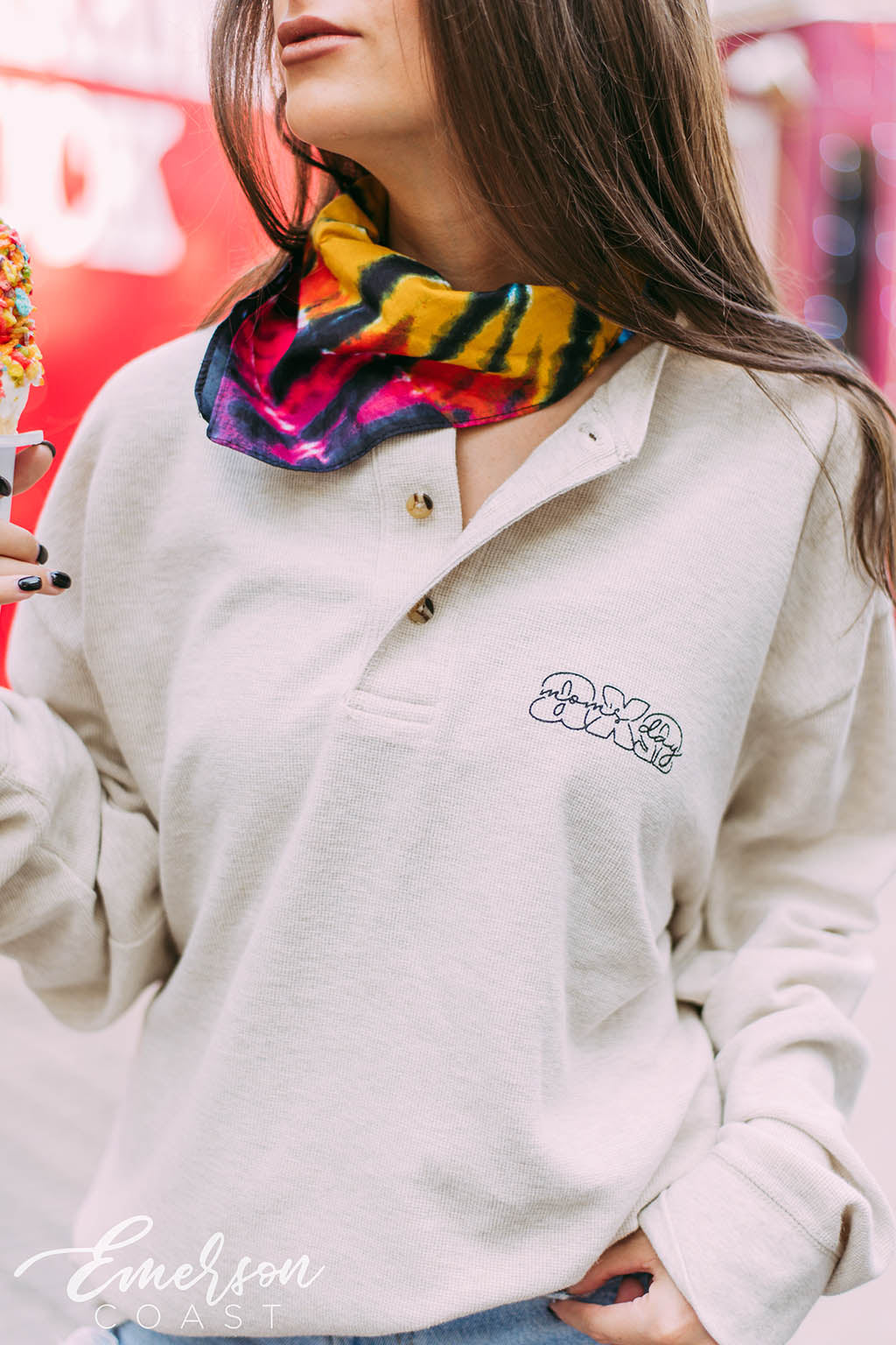 The oatmeal henley is the perfect style for any design, and the three button neckline makes accessorizing super easy.