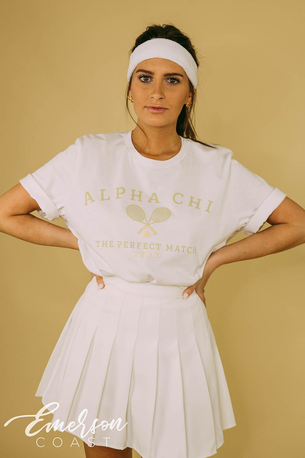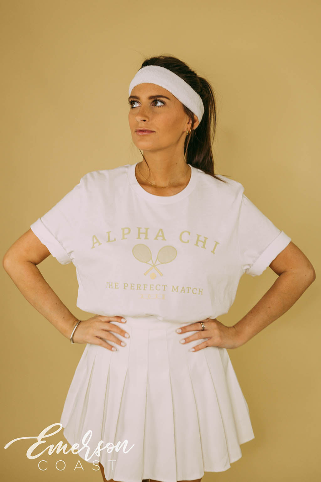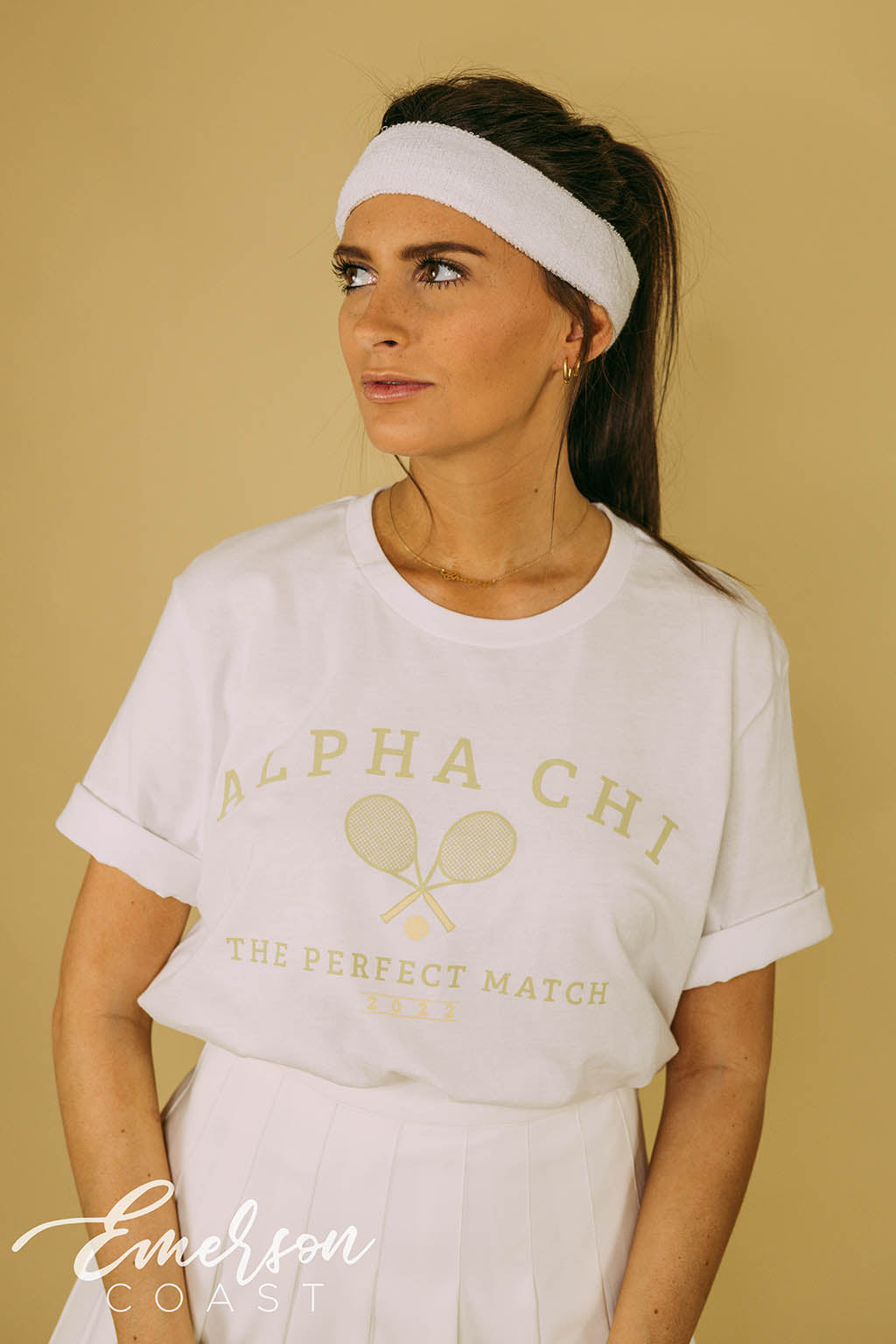 Serve the look with the Alpha Chi Perfect Match Bid Day Tee!