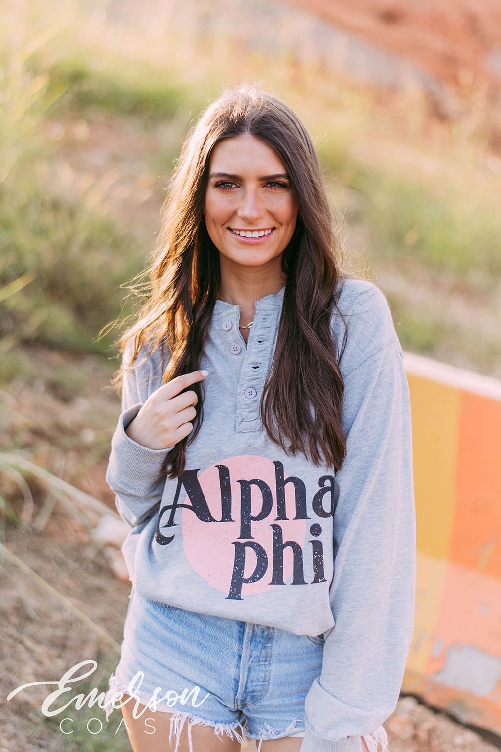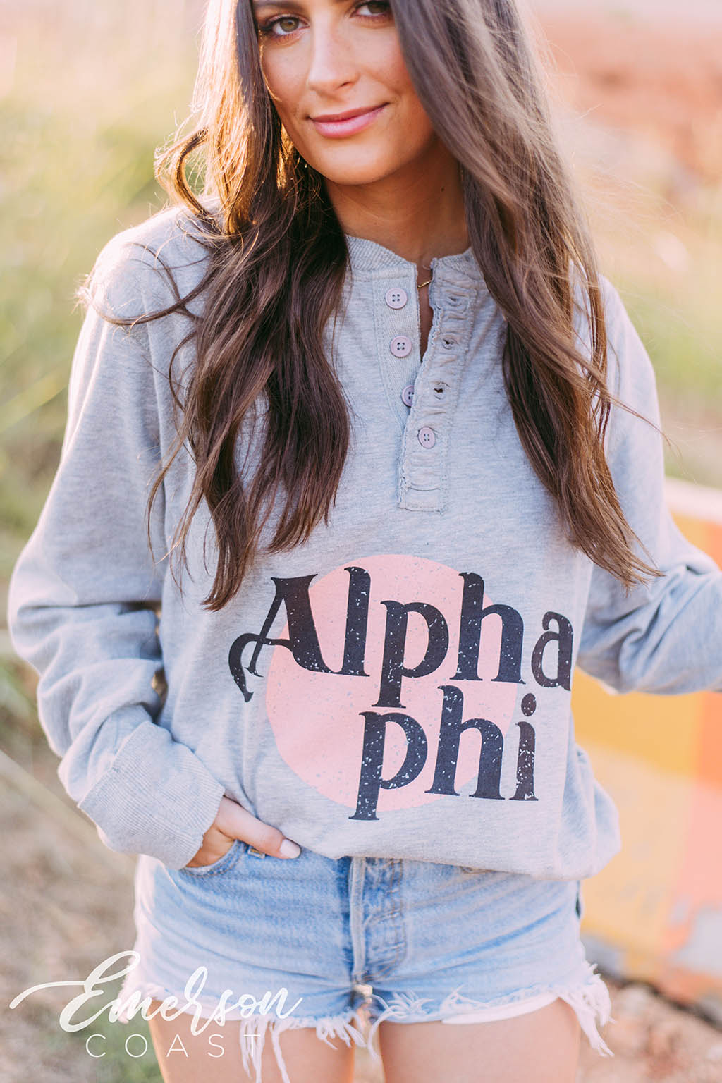 Keep it simple with the Alpha Phi Thermal Long Sleeve Henley!