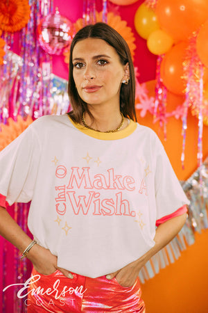 This Chi Omega Philanthropy Make a Wish Twinkle Star Colorblock Ringer is perfect for any occasion. Perfect for Recruitment, a Philanthropy event, Wish Week, or PR! Style this custom tee with bold bottoms and white sneakers to complete the look. Or add some gold jewelry and stars to find your sparkle!