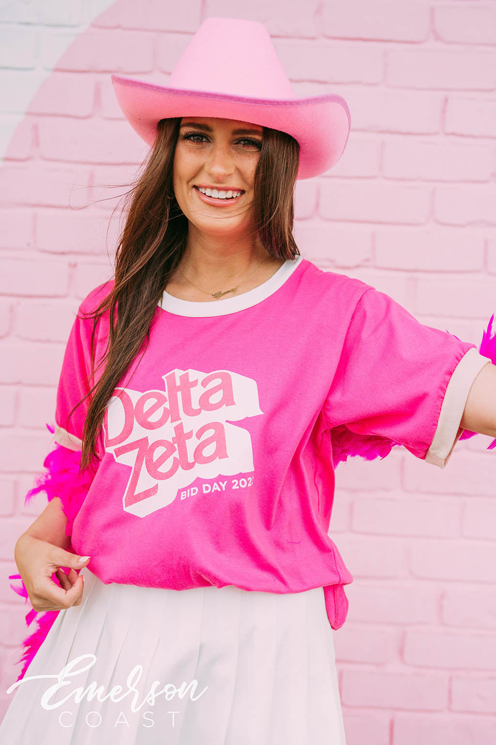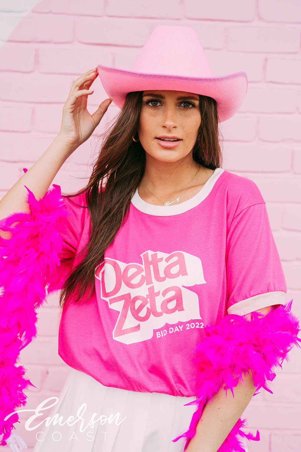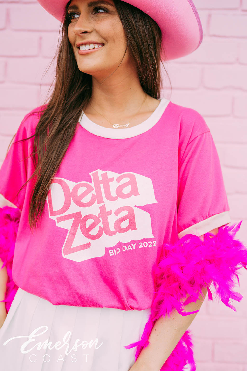 Life's fantastic with the Delta Zeta Barbie Bid Day Colorblock Ringer Tee!