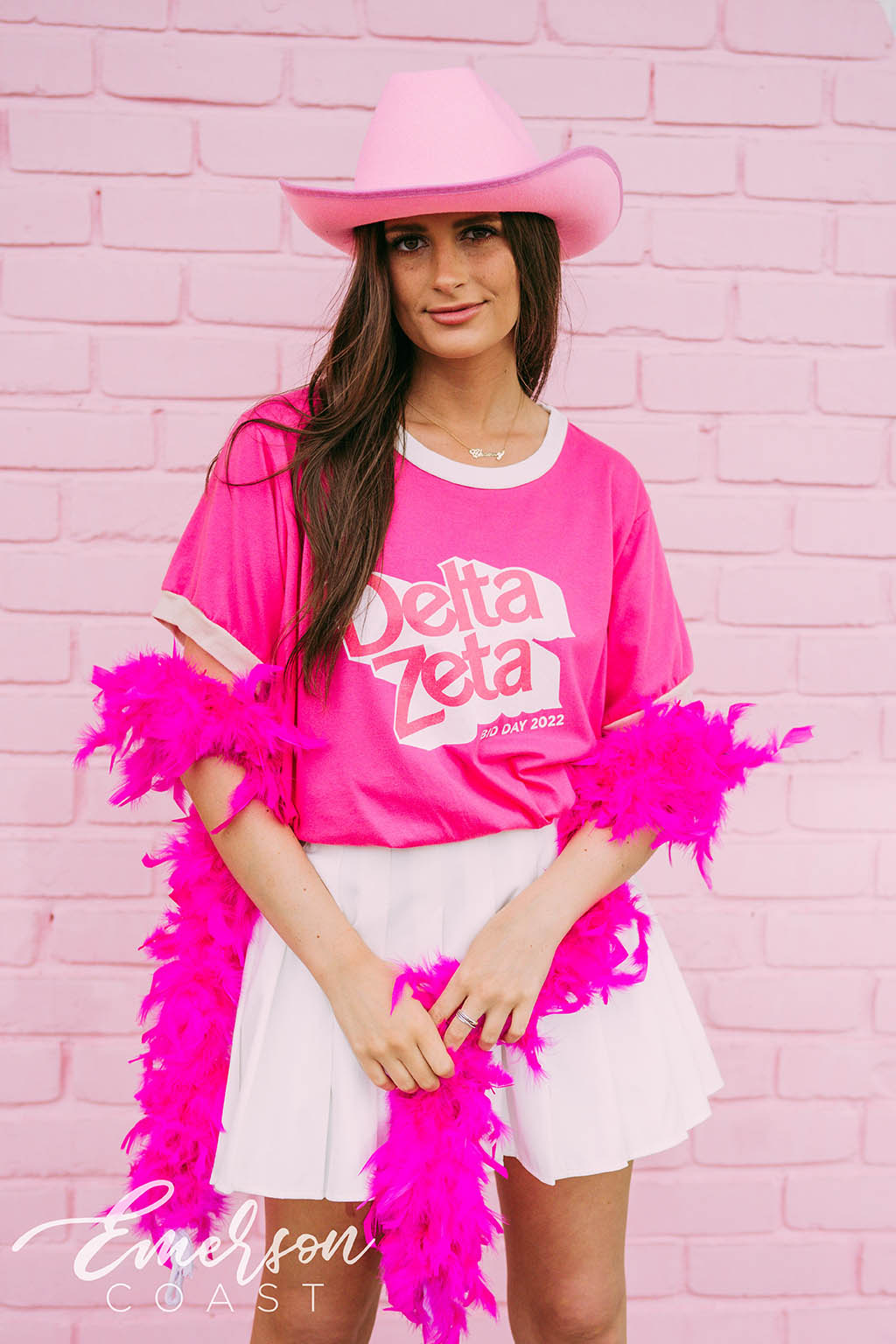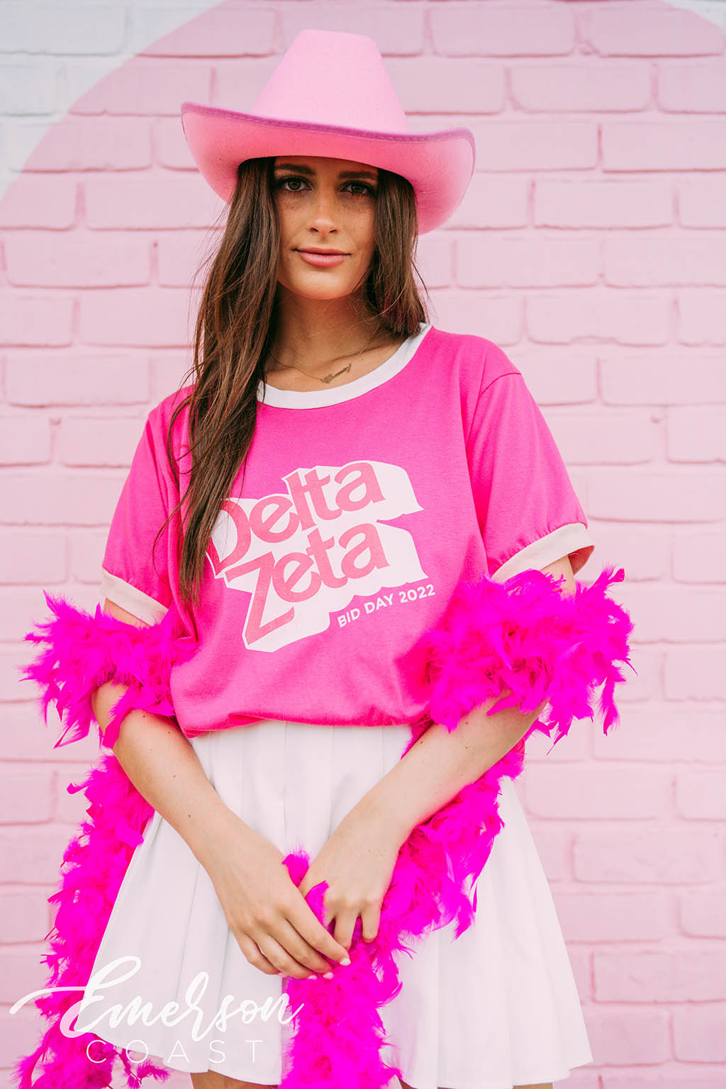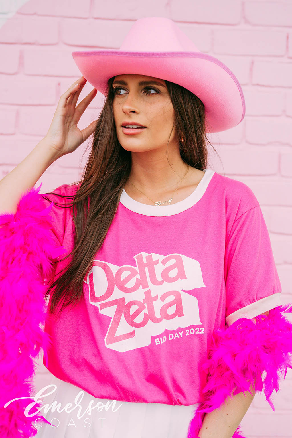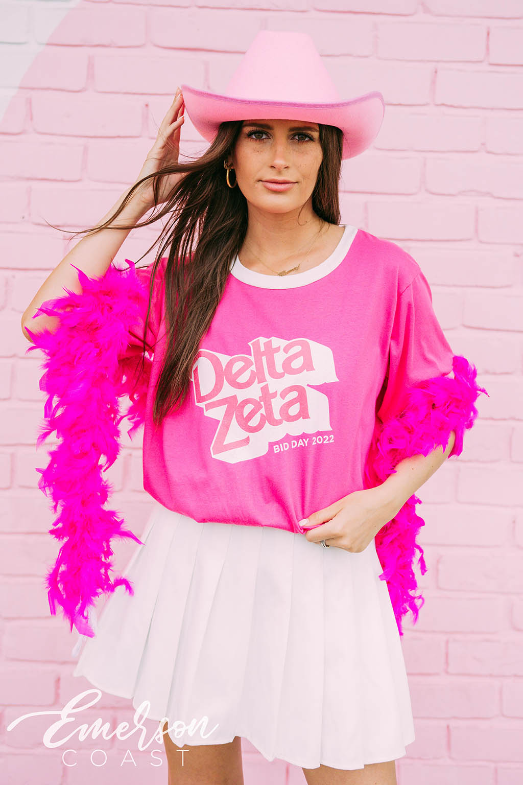 Life's fantastic with the Delta Zeta Barbie Bid Day Colorblock Ringer Tee!
