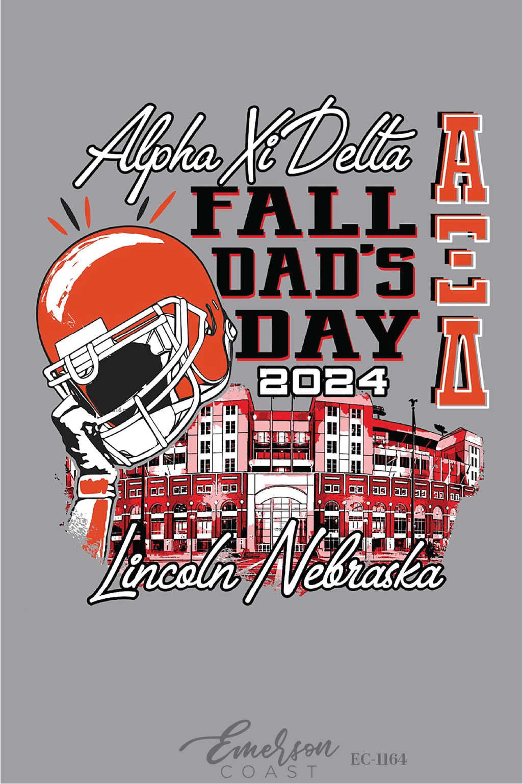 Show your Alpha Xi Delta spirit this Dad's Day with our University of Nebraska Lincoln Fall Dad's Day T-Shirt! This cozy tee is not just a shirt; it’s a canvas for your unique style. Customize the design to perfectly reflect your sorority’s personality and make your family weekend unforgettable.