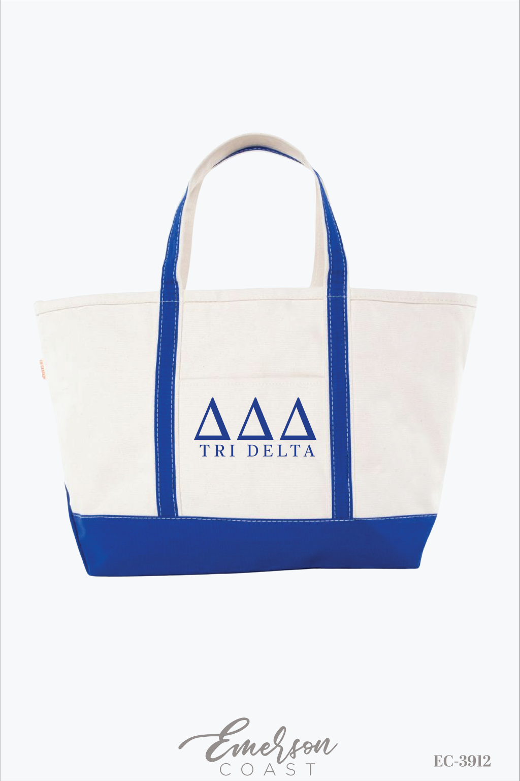 Introducing the Delta Delta Delta Royal Blue Bid Day Tote T-Shirt, your perfect companion for celebrating sisterhood in style! This vibrant tote features an eye-catching royal blue design that beautifully showcases your sorority pride.