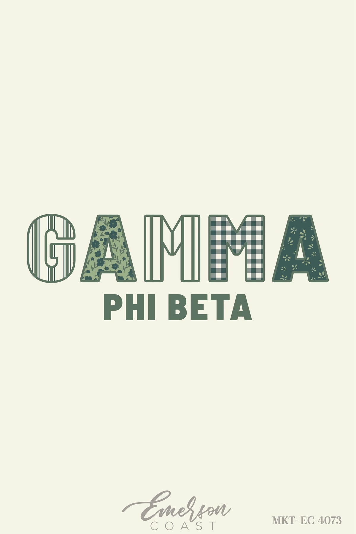 Introducing the Gamma Phi Beta Green Patchwork Recruitment Tee, a stylish and vibrant way to showcase your sorority spirit! This tee features a unique patchwork design that blends various textures and patterns, making it a standout piece for any occasion.