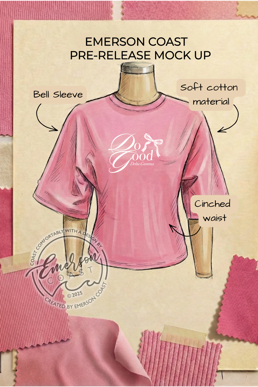 Be a trendsetter with exclusive access to this pre-release Bell Sleeve Cinched Waist Tee!