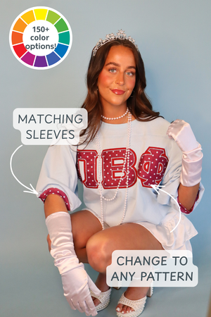The Customization: This is way more than your boring letter jersey. Spice it up with metallic letters, dainty lace applique, or bold polka dots. With over 150 colors available and endless combo possibilities, if you can dream it, we can build it. The sky is the limit! 🧵💎