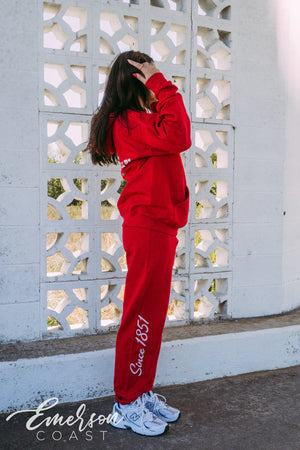 • model is 5'4" wearing a size large hoodie and size medium joggers
