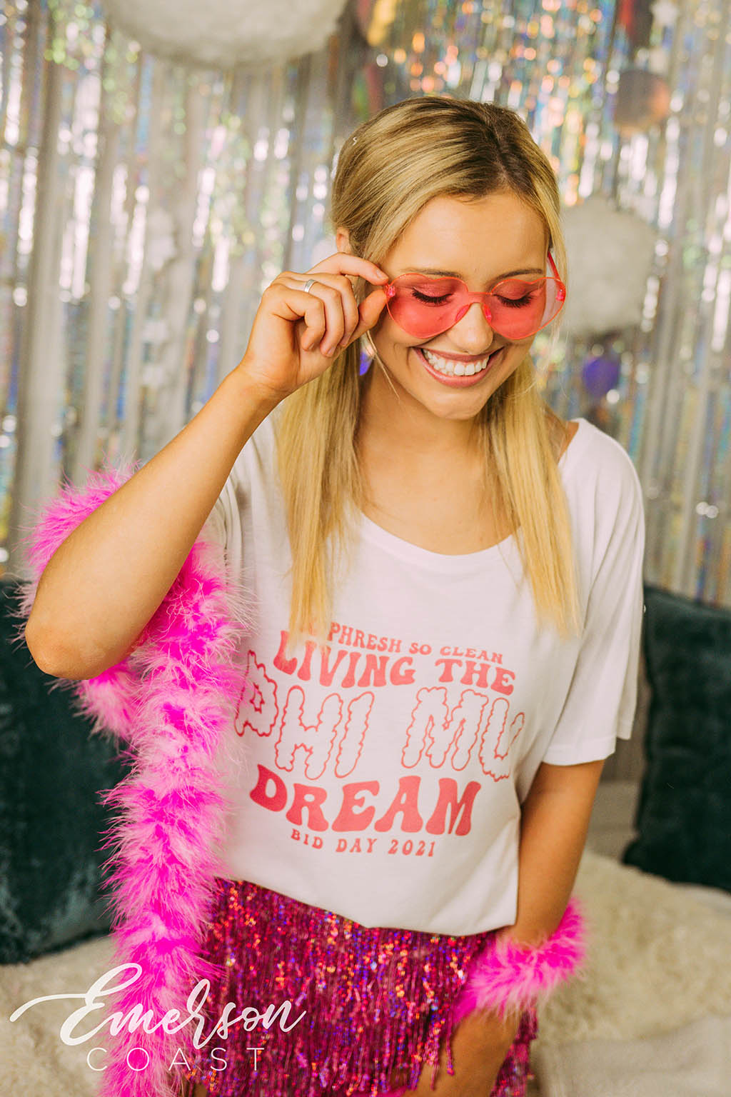 Float away with the Phi Mu Living the Dream Bid Day Slouchy Tee!