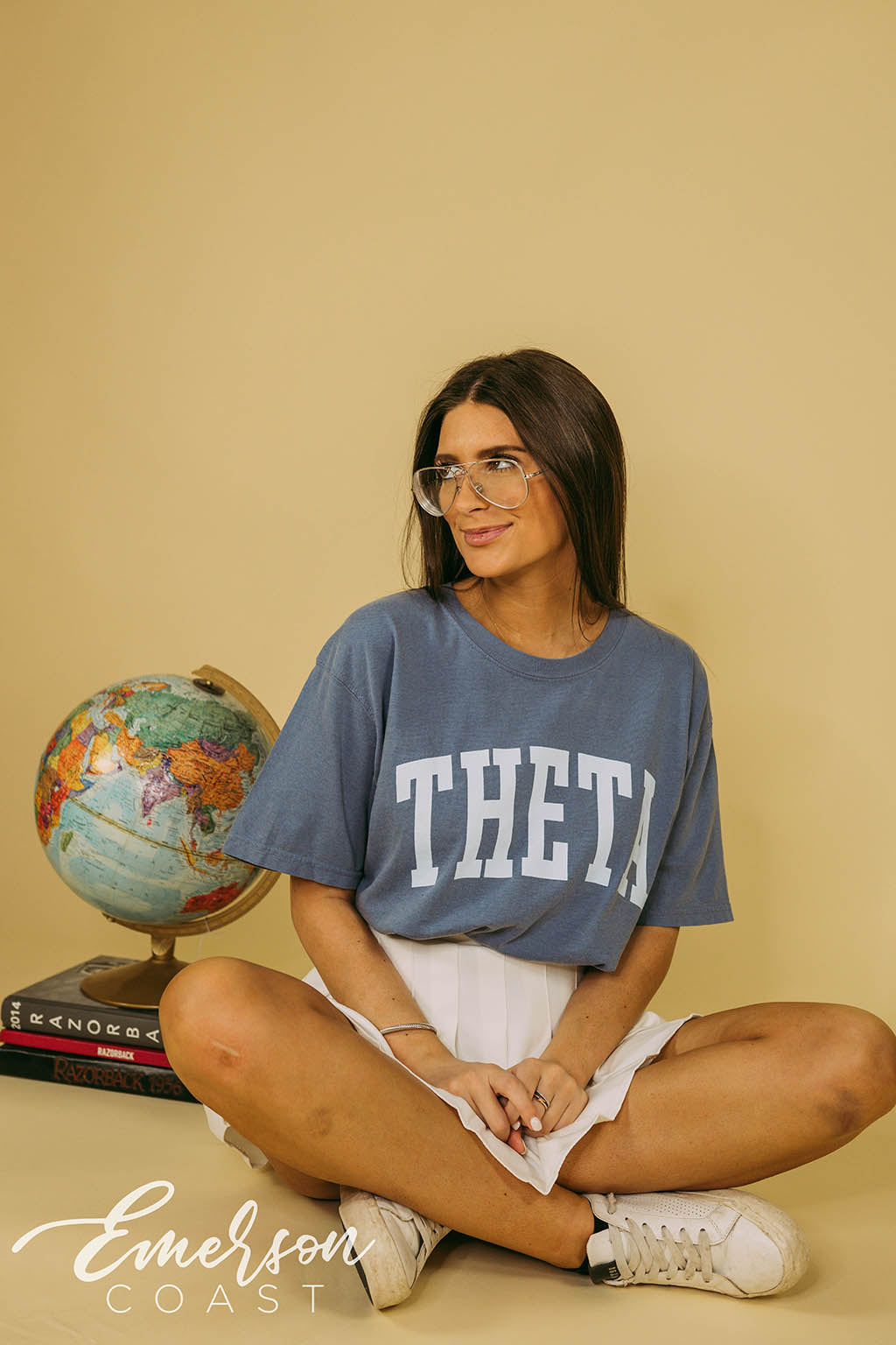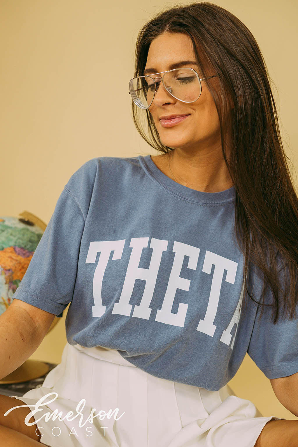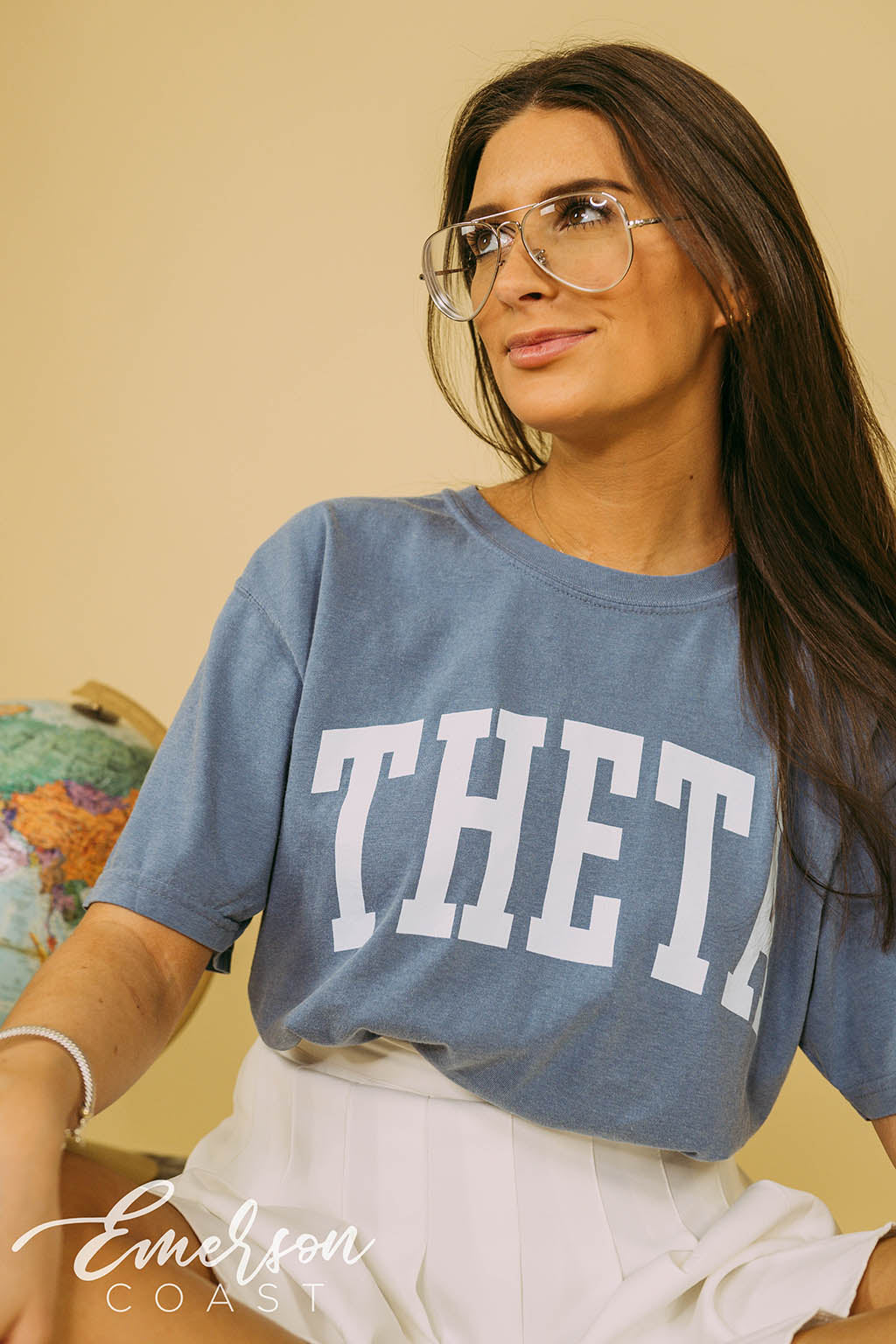 Be bold with the Theta Bold Blue Jean PR Tee!