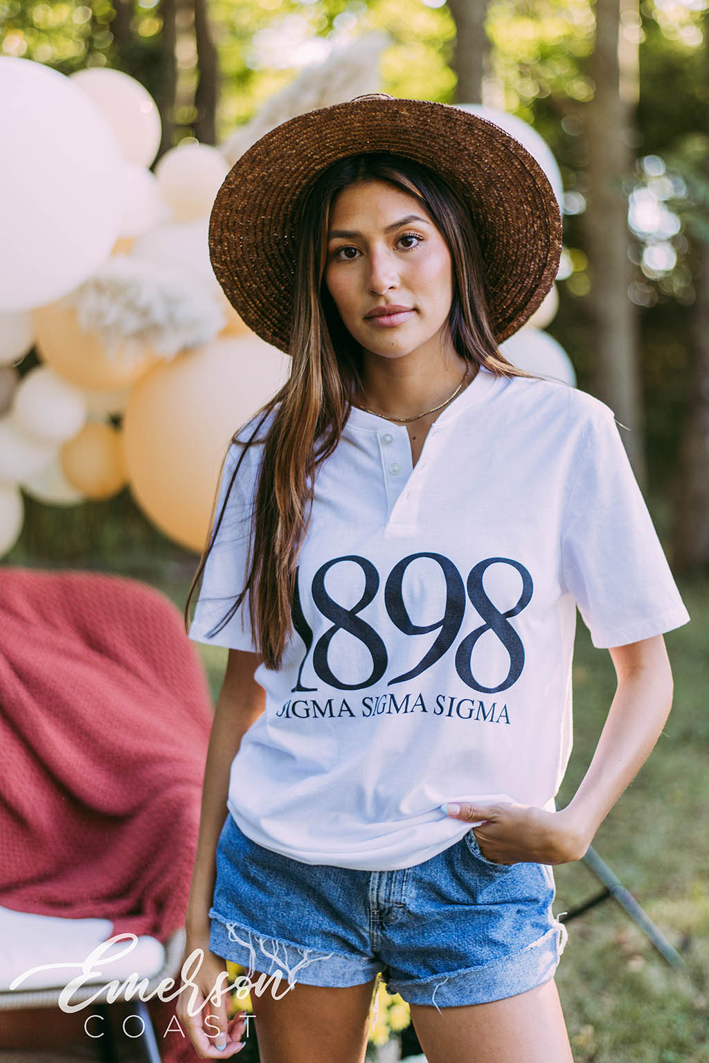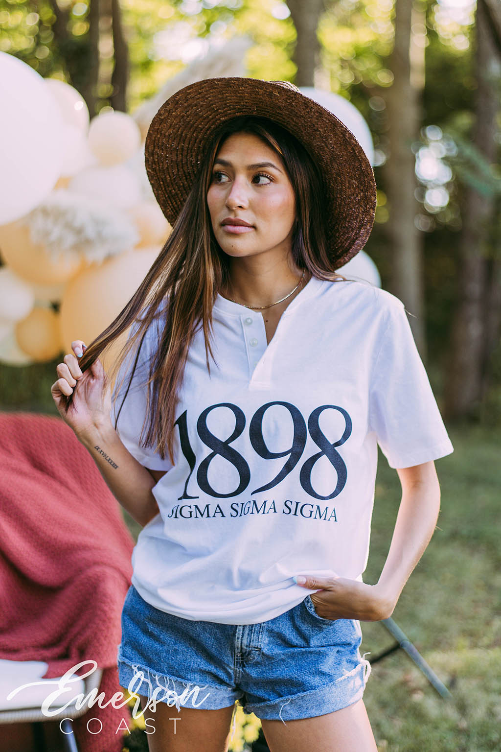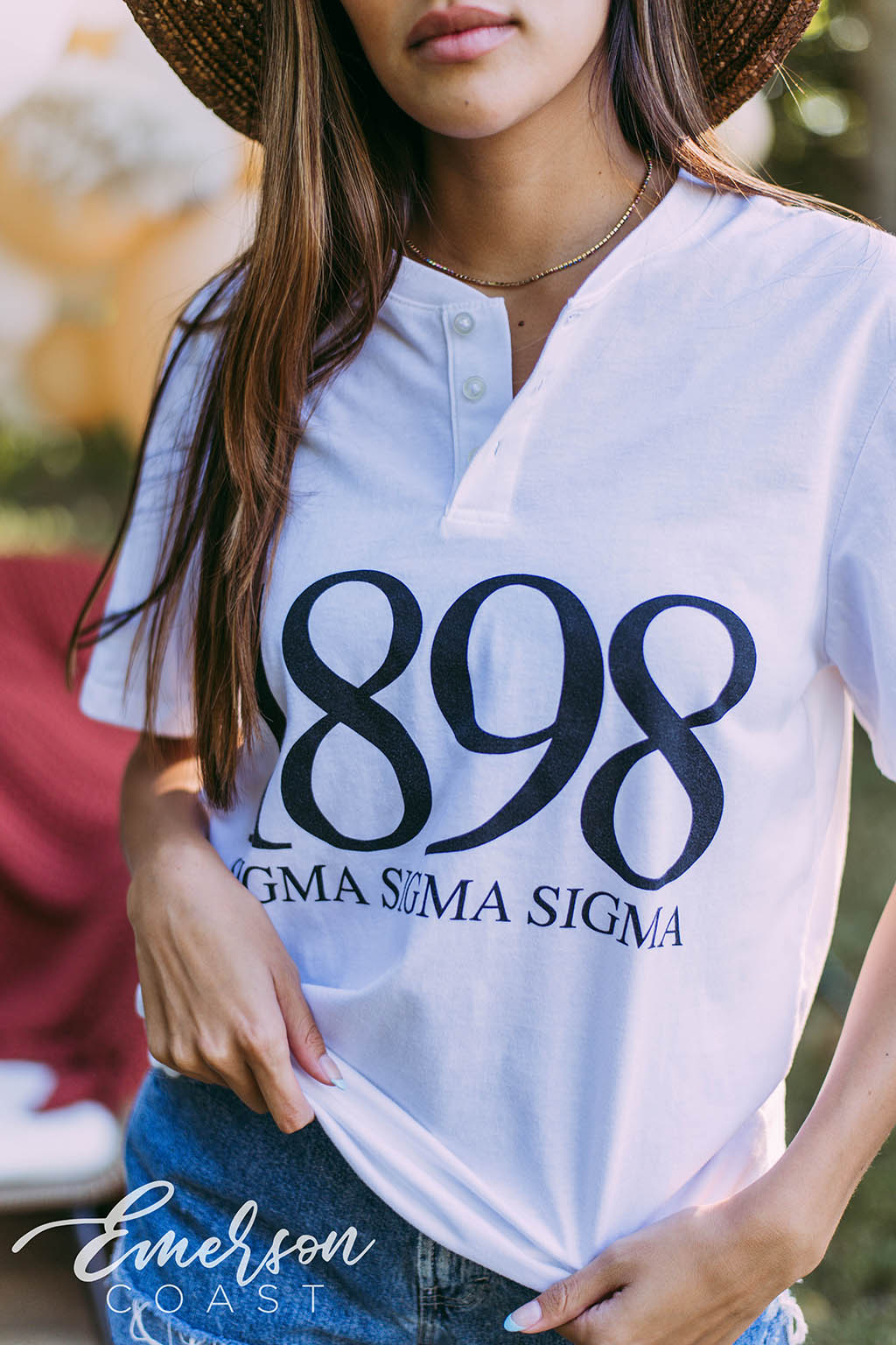 Sigma Sigma Sigma will be loving this basic design that shows off their established datelarge across the front.